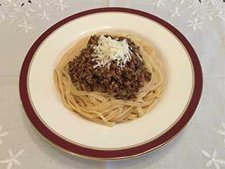 2) Σ\' ένα βαθύ τηγάνι καβουρντίζω τον κιμά μέχρι να σκουρύνει ελαφρά. Συνεχίζω ρίχνοντας το κρεμμύδι και μετά από λίγο τις τριμμένες ντομάτες. Αλατοπιπερώνω, προσθέτω ελάχιστη κανέλλα, βασιλικό ή ό,τι άλλα μυρωδικά θέλω. Προσθέτω βρασμένο νερό και αφήνω τον κιμά μου να ψηθεί.